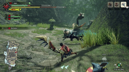 Moreover, Rise eliminates a lot of the minor annoying shit that sometimes puts players off of the older games. You no longer have to use consumable items (or, in the case of World, run around picking up footprints for a while) in order to track the monster; it’s always displayed on your map. You no longer have to abandon and restart your quest if you forget to eat or refill your item pouch, or discard items permanently if your pouch is full and you want to pick up something else. You no longer have to carry around pickaxes and bug nets that can break upon use. You no longer have to look up weapon upgrade trees, item combos, or monster hitzones and weaknesses online; there’s a very thorough and convenient journal available entirely in-game.